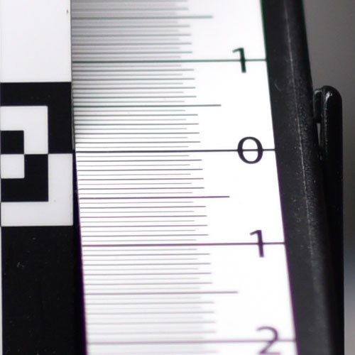下の方の直線は、赤色で示した2本の間隔が、2mmです。