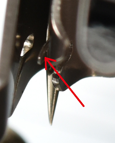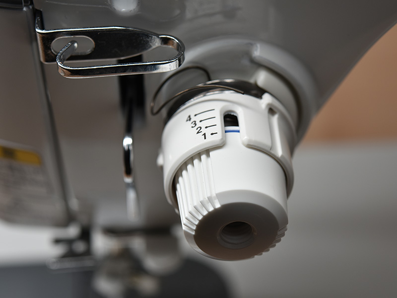 純正の下の糸調整つまみと上のサブテンションつまみ。
