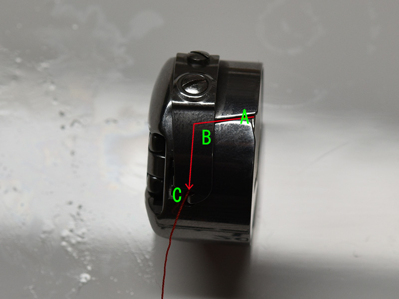 どちらで糸調整を取るかと聞いたら、基本的に下の方のメインダイヤルの方でやってくださいとの事でした。