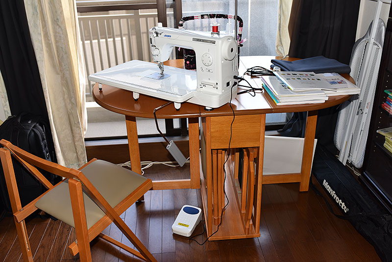 今までテスト的に使う意味があったので、仕事場の作業室でミシンを試していました。